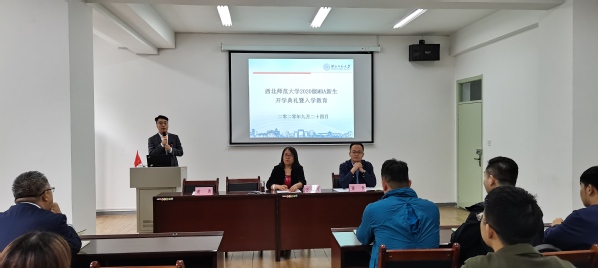 工商管理系主任马文静老师作为教师代表致辞。她祝贺2020级同学们顺利进入自己心仪的学校就读,祝愿新同学以饱满的热情迎接新的挑战,寻求新的发展,在创新求实的道路上不忘初心,合作共赢,创造出更多的辉煌。2020级新生王洪图同学代表新学员分享了他对未来学习生活的期许,呼吁大家要以“师大人”的身份肩负使命,勤奋学习,在师大这个优质的平台上汲取知识、升华自我。