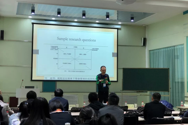 会议开始后,依次由来自广东财经大学、上海财经大学、南京大学、南开大学、南京审计大学、西南财经大学的六位专家进行了学术讲座:吴坤津副教授做了题为《家长式人力资源管理的内涵及影响机制探讨》的讲座,阐述了家长式人力资源管理研究的文化根源与影响机制;蔡亚华副教授做了题为《Polynomial regression with response surface analysis》的讲座,详细论述了多项式回归方法原理与统计分析技术;席猛研究员做了题为《战略人力资源管理研究:过去、现在和未来》的讲座,回顾了战略人力资源管理的脉络与核心问题,提出了许多新思路新方向;林伟鹏副教授做了题为《多水平建模:理论、测量与分析》的讲座,主要介绍了多水平建模理论基础、测量问题和分析方法;杨静副教授做了题为《企业生态创新的前因后果研究》的讲座,分享了从实践到文献的研究思路,讲解了环境领导力的影响;徐姗副教授做了《元分析方法及其应用》的讲座,完整讲述了经典元分析方法的原理和实施步骤。最后,周文杰副经理、徐姗老师、吴坤津老师、杨静老师、席猛老师等参加了18日下午的学术研讨,黄勇老师和与和苏超老师分别分享了有关上下级关系元分析及环保型领导力的最新研究论文。