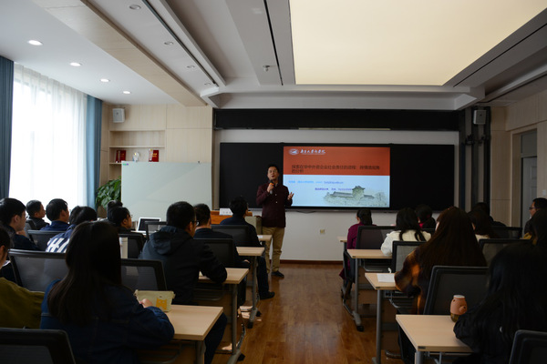 10月23日下午,南京大学商学院工商管理系教授、管理学博士刘海建在教学楼10C506教室做了题为“探索本土在华中外资企业社会责任的进程:一个跨情境的视角”的专题学术报告。本次学术报告由公司黄勇教授主持,公司工商管理系教师师及2019级、2020级学硕共70余人参加了此次学术报告。
