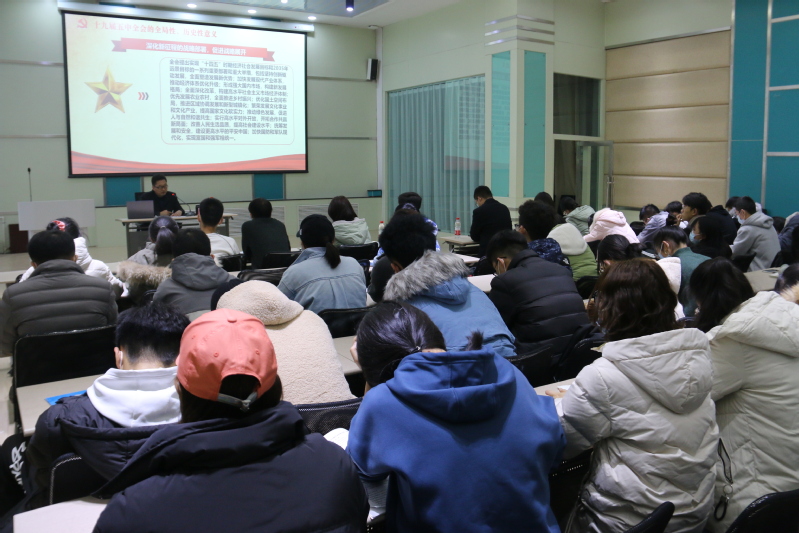 公司党委书记马科中从党的十九届五中全会概况、重大意义、主要内容及如何贯彻落实等方面作了详细讲解,并要求全院师生采取多种方式深入学习党的十九届五中全会精神,深刻领会全会精神,统一思想,凝心聚力,把贯彻落实全会精神聚焦到学校一流大学建设和学院事业发展上,群策群力,奋发有为,助推学校和学院事业再上新台阶。