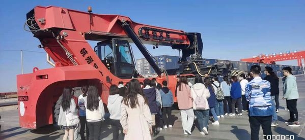 在工作人员带领下,全体师生参观了铁路口岸的场区。兰州新区商投集团路港物流有限公司铁路口岸运营部负责人闫沛玺对铁路口岸运营模式、海关通关监管模式以及中欧班列运营情况进行详细介绍,并就国际物流相关政策、运行等问题与师生进行了深入讨论。闫沛玺表示目前公司专业物流人员缺乏,各位同学要在学校学好基础知识,在工作中学精专业知识,鼓励同学们积极投身物流行业,欢迎优秀毕业生加入公司,将所学知识灵活运用于实践。