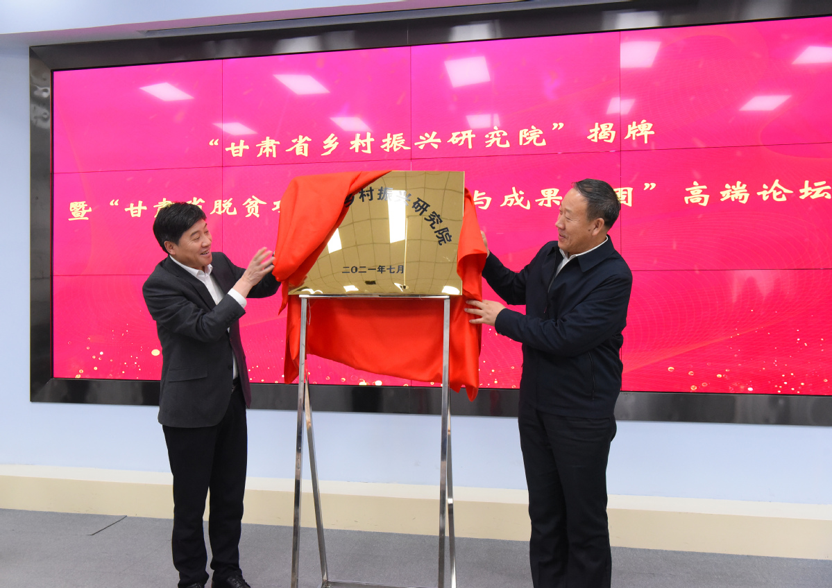 仪式上,王成勇与张俊宗共同为甘肃省乡村振兴研究院揭牌。同时,与会专家联合发起了“发挥人才智库优势 助力甘肃乡村振兴”倡议书,号召全省相关领域专家以甘肃省乡村振兴研究院为平台,共同为落实国家乡村振兴战略,开展甘肃省乡村振兴理论和实践研究,助力幸福美好新甘肃建设贡献力量。