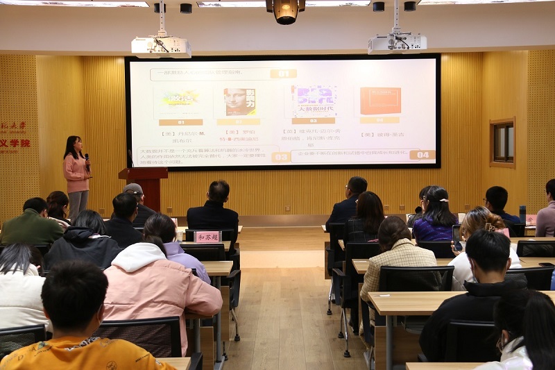 12月10晚,商学院在田家炳书院六楼多功能报告厅成功举办第一届“读书分享会”暨“优秀读书笔记展”活动,学校督导组王永成教授、商学院经理张永丽及工商系全体师生共计200余人参加了此次活动,此次活动由工商系主办。