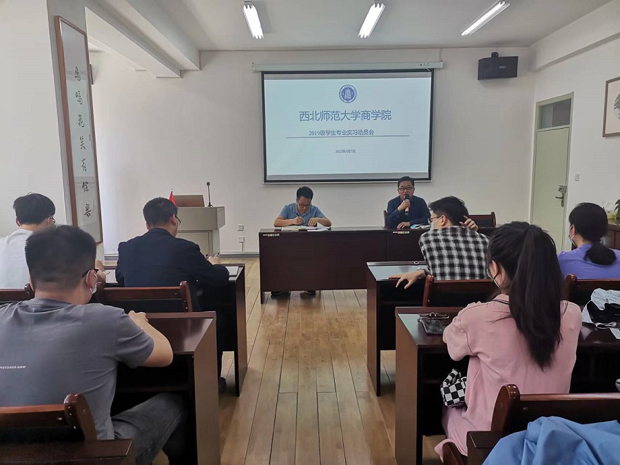 5月8日下午,商学院在10C208会议室举行了2019级毕业生专业实习动员大会。会议由商学院书记马科中主持,实习指导教师、教务办尚宏利老师及2019级实习小组组长和自主实习员工100余人参加会议。