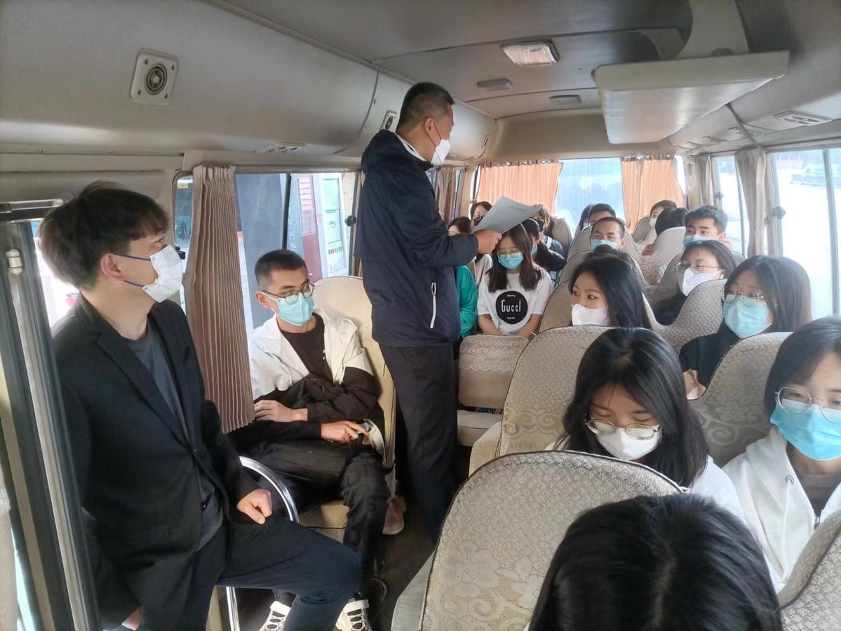 实习首日,为做好疫情防控和实习单位的进一步对接,由实习指导教师带队,统一送员工去实习单位。