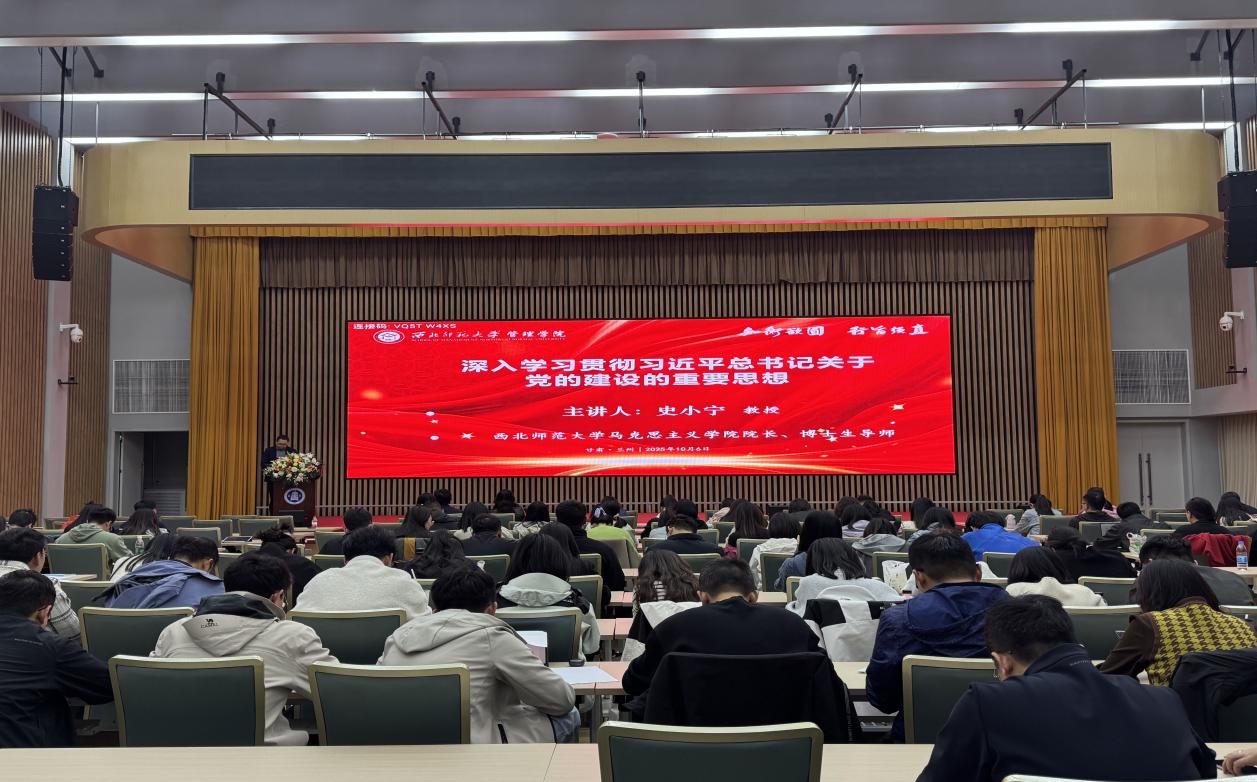 2025年10月6日下午,应学院邀请,英国正版365官方网站马克思主义学院经理史小宁教授作题为《深入学习贯彻习近平总书记关于党的建设的重要思想》的专题讲座。本次讲座由MPA中心执行主任白列湖副教授主持,学院领导、部分专任教师及2024级、2025级全体MPA研究生共220余人参加。