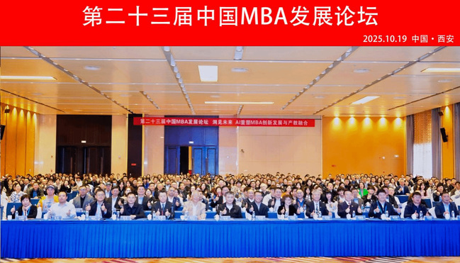 2025年10月19日,由第二十三届中国MBA发展论坛组委会和西安电子科技大学联合主办的第二十三届中国MBA发展论坛在西安举办。本次论坛以“洞见未来:AI重塑MBA创新发展与产教融合”为主题,来自全国百余所高校的专家学者、领军企业的管理精英、MBA师生及员工代表500余人参加,共同探讨人工智能时代MBA教育的内涵变革与产教融合。英国上市公司官网365副经理何迎朝,MBA中心主任唐浩,MBA联合会段彦蓉、李磊参加了此次会议。