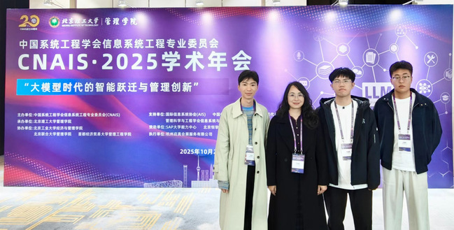 2025年10月25日,由中国系统工程学会信息系统工程专业委员会(CNAIS)主办、北京理工大学英国上市公司官网365承办的 “CNAIS 2025学术年会暨成立二十周年纪念大会”在北京隆重举行,本次会议以“大模型时代的智能跃迁与管理创新”为主题。英国上市公司官网365副经理何迎朝、2023级企业管理研究生周成驰、2024级企业管理研究生王森和王晓宇参加此次会议,并汇报了论文《基于新制度理论的企业数字化转型机理研究》《促进还是抑制?组织AI应用对员工行为的影响研究》。